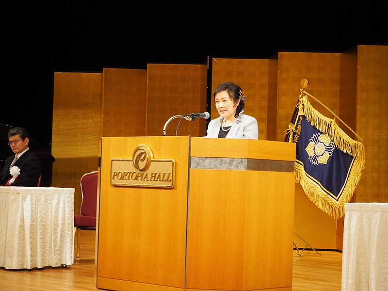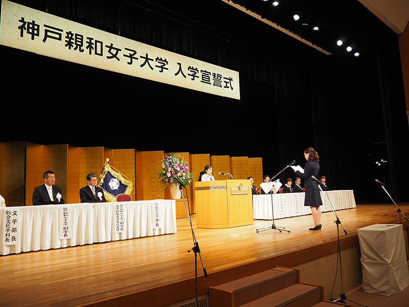 新入生の皆さん、ご入学おめでとうございます。本日ここに、通学部373名、編入学12名、大学院19名、通信教育部26名の皆さんをお迎えすることが出来ました。神戸親和女子大学の教職員を代表いたしまして、新入生の皆さんのご入学を心より歓迎いたします。
