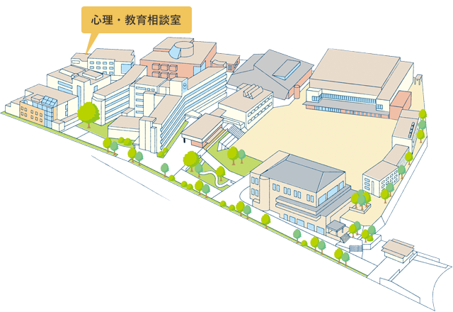心理的な悩み全般を対象とした相談室で、幼児から成人の方までの幅広い相談に専門のスタッフが応じています。
