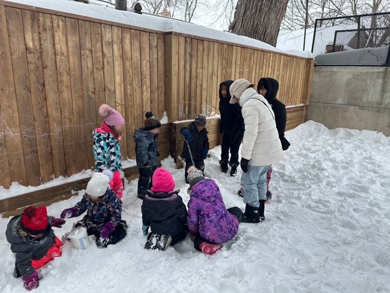 グループごとに協力して雪山を作る活動を行い、子どもたちと交流を深めることができました。雪をかけ合う姿には笑顔があふれ、寒さも忘れるほど楽しい時間となりました。