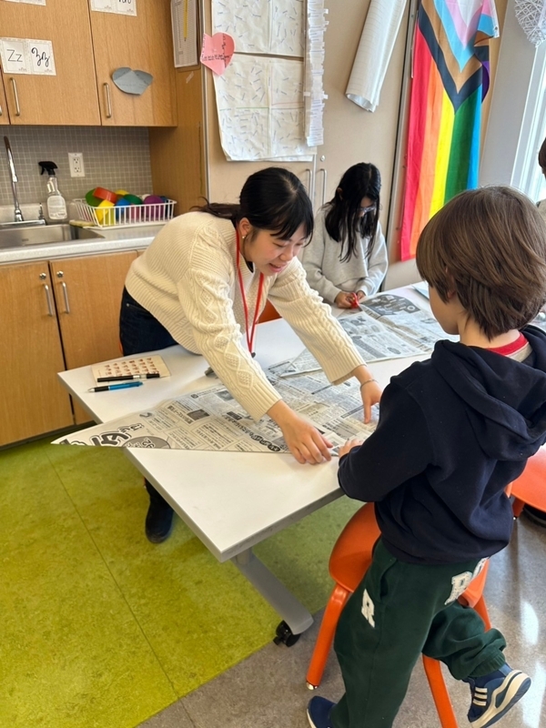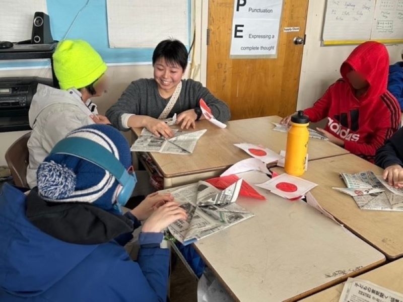 英語で説明することに不安もありましたが、思い切って伝えてみると、子どもたちが興味を持ち、積極的に会話を広げてくれました。折り紙の手順を細かく説明するのは難しかったものの、熱心に取り組む姿にやりがいを感じ、制作は無事成功。Wilkinson Public Schoolの児童たちと交流を深める貴重な機会となりました。