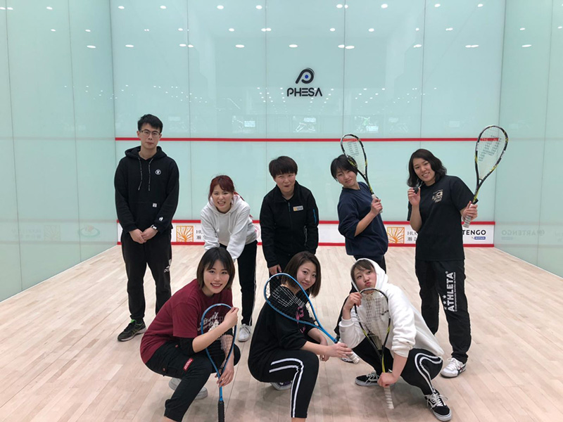 初めてのスカッシュはすごく楽しく、時間を忘れ3時間も活動していました!!