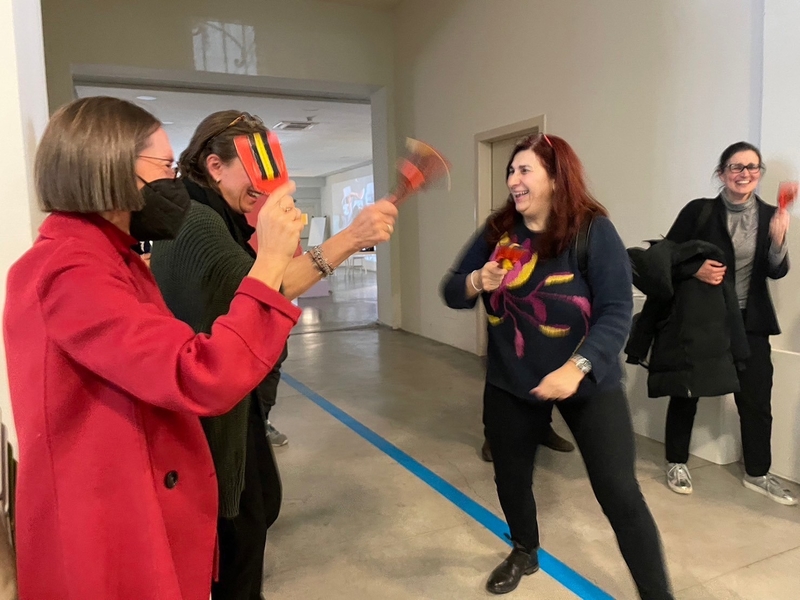 今日の研修は、アトリエスタのフェデリカ・カストリコさんのアトリエの文化からはじまりました。アトリエの歴史に触れながら、アトリエという場所は子どもの可能性を見出せるところであることを学びました。