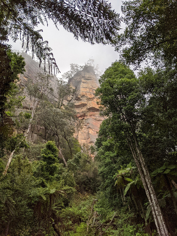 大パノラマのブルーマウンテンズは圧巻ですが、雨と霧に包まれたユーカリの森は、独特の静けさと匂いを保っています。雨粒の光に包まれた森は、幻想的な世界を作り出します。