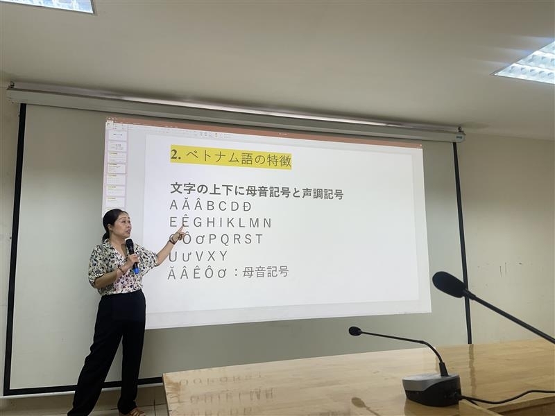 午前中はグループ発表を行い、日本の学生は日本の方言について、ベトナムの学生は結婚観について発表でした。