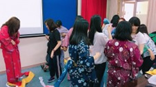 日本からは出し物として、2つのグループに分かれ、浴衣着付け体験、かるた体験をして楽しんでいただきました。そして、5つのフィールドワークのグループに分かれ、各グループのテーマに沿って発表に向けての議論を深めていきました。